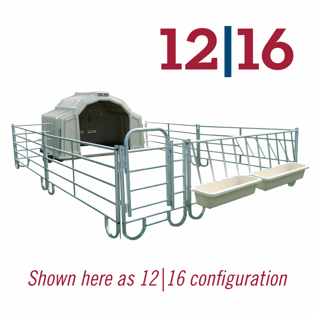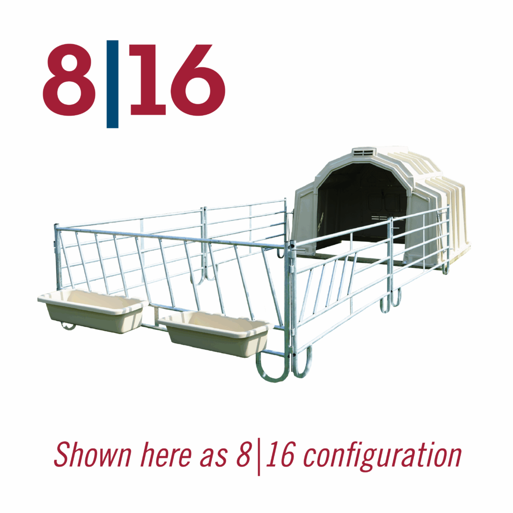 Still available in the 8|16 & 12|16 configuration options, the Group yard is our NEW fencing option that attaches to our Group Hutch and can hold 4-7 calves in the smaller option and up to 8 calves in the larger option. With the ALL NEW ThruTube fabrication, you can now add as many panels as you want using the ThruTube Extender Links to reinforce strength at the intersection making it INFINITELY MODULAR.